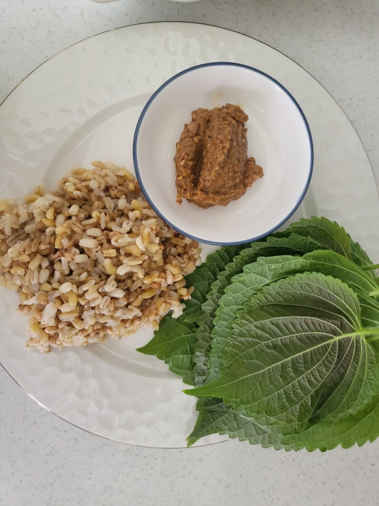 맛있는 통밀.귀리. 꽁보리밥과 내가 기른 유기농 깻잎